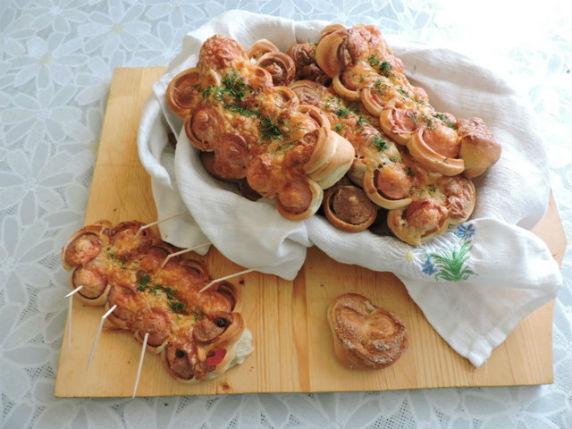 Аккуратно выкладываем сырые булочки на противень смазанный подсолнечным маслом, сверху смазываем взбитым яйцом и посыпаем небольшим слоем тертого сыра. Отправляем наши булочки в духовку разогретую до 180 градусов и выпекаем 20-25 минут. У нас получились пышные, сочные, подрумяненные булочки. Даем им время немного остыть и можно подавать к столу. Вот так, очень быстро и просто у нас получились замечательные булочки-«гусенички» к завтраку. Приятного всем аппетита!