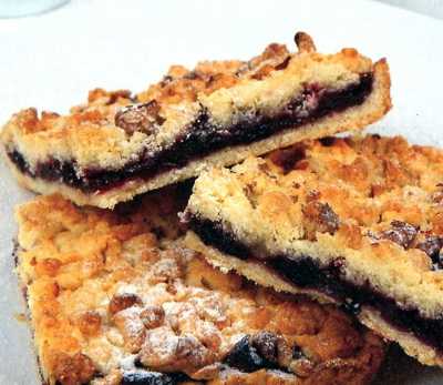 Смазать форму со съемным дном. Натереть первый шар теста на крупной терке, закрыть все дно формы. Выложить джем на тесто, равномерно натереть второй шар теста. Выпекать пирог 25-30 минут. Остудить и вынуть из формы.