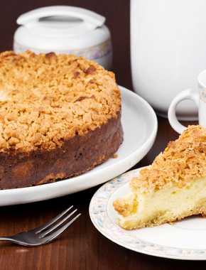 2/3 теста положить в форму и распределить, чтобы были края. Затем вылить творожную смесь и затем натереть на терке тесто, которое вы поставили в морозильник, пока вы не покроете поверхность.