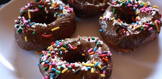Выложите пончики на поверхность, посыпанную мукой и оставьте на полчаса, чтобы тесто поднялось. В широкую емкость налейте масла и жарьте до полного приготовления - пончики станут золотисто-коричневого цвета. После жарки лучше изложить пончики на бумажное полотенце, чтобы удалить все лишнее масло и немного подсушить. Сверху можно просто посыпать сахарной пудрой, или покрыть растопленным шоколадом и украсить кондитерской присыпкой.
