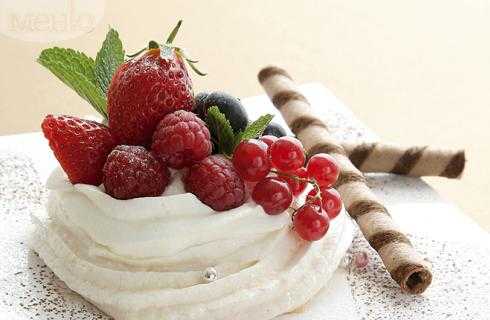 2. Белки экструдируют на лист выпечки в форме гнезда с диаметром 20 см и посыпать немного сахаром-песком. Положите в предварительно разогретую духовку на лист для выпечки при температуре 130° С, около 40 минут, а затем 1 час при выключенной духовке. После охлаждения гнезда помещают на тарелки.