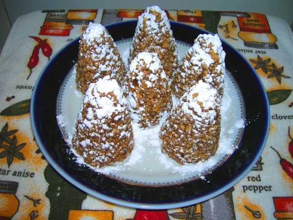 - Готовые «шишки» присыпьте сахарной пудрой.