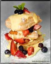 Разморозьте один лист слоеного теста и поместите его в подходящую прямоугольную форму для выпечки. Острым ножом разрезаем на прямоугольные куски в зависимости от предпочтительного размера. Выпекать в предварительно разогретой духовке при температуре 200 градусов около 10 -12 минут (до коричневого цвета теста).