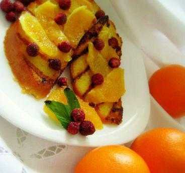Поджарить с двух сторон, выкладывать на тарелку украсив ломтиками апельсина или ягодами (по желанию).