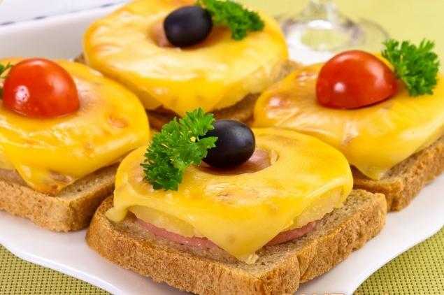 Готовые тостики можно украсить помидорами черри или маслинами.
