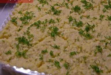 Разделить крупу на две равные порции посолить, залить по 150 г горячей воды, поставить всё (и овощи) в пароварку на 20 минут готовую поленту (крупу) залить сливками (150 г порция) и хорошенько перемешать, выложить одну половину в грубокую форму, посыпать брынзой уложить овощи, слегка вдавить в поленту посыпать овощи брынзой выложить сверху вторуло половину поленты, слегка вдавить в овощи, посыпать сверху укропом, поставить застывать