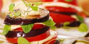 Баклажаны промыть, сделать проколы и опустить на 15 минут в соленую воду. Затем вытащить овощи из воды и хорошенько протереть полотенцем, нарезать толстыми кружками. Моцареллу и помидоры также нарезать кружочками. Баклажаны посолить и слегка обжарить до золотистого цвета на оливковом масле. Противень смазать маслом. Выкладываем 8 обжаренных баклажанов, на них кусок моцареллы, томат, опять баклажан, томат.