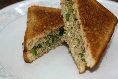 Поджарьте хлеб. По вкусу можно насыпать своей любимой приправы. Разместите тунец на хлебе. Сверху можно положить тертый сыр.