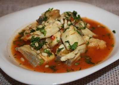 Варить рыбный фарш в кастрюле на водяной бане (над кастрюлей с кипящей водой) в течение 1 ч. Когда фарш будет готов, нарезать его кусками и аккуратно уложить в кастрюлю с приготовленным соусом. Досолить по вкусу, влить уксус и тушить на слабом огне 10 мин. Подавать с отварным рисом.