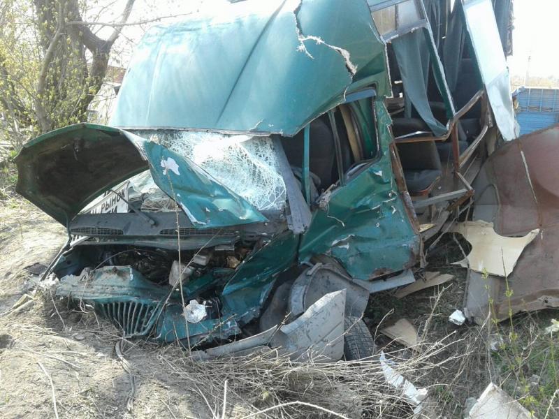 В Лисичанске около полудня 16 апреля на улице Гора Попова произошла ужасная авария: МАЗ врезался в маршрутное такси "Центральный рынок - завод "РТИ".