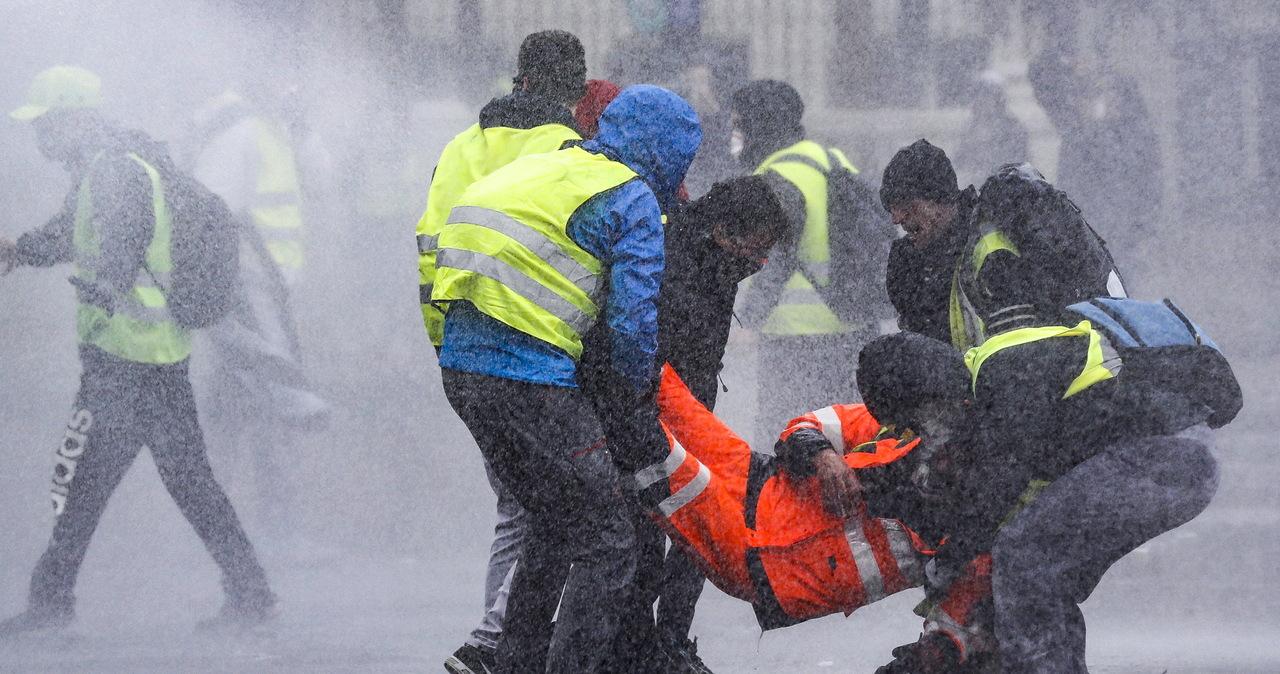 Первые стычки с полицией на Елисейских Полях произошли около 9 часов утра. Манифестанты пытались подтолкнуть кордон полиции, на что сотрудники сил безопасности ответили слезоточивым газом.