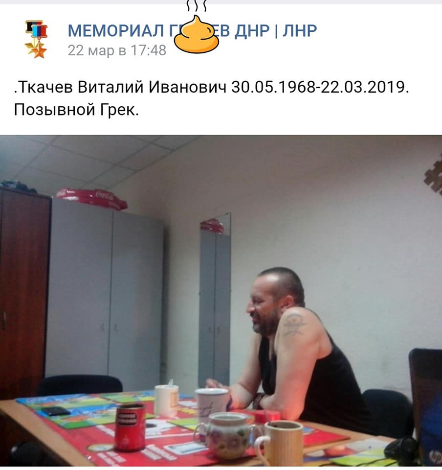 Так, 22 марта "200 бригаду" пополнил наводчик артиллерии "ДНР" Ткачев Виталий Иванович 1968 г.р. из Донецка, имевший полызной "Грек". К слову, на Донбассе за годы войны были ликвидированы уже несколько боевиков с аналогичным прозвищем: об одном из таких случаев сообщалось в феврале.