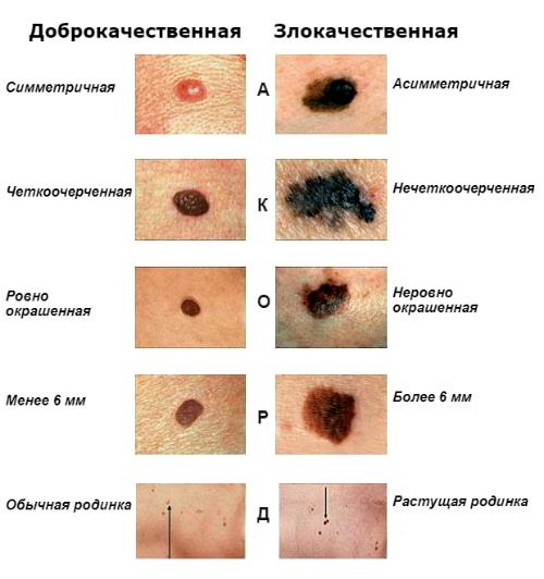 Меланома или рак кожи может появляться на здоровом теле или перерождаться с уже существующих родинок. Причиной появления этого недуга, кроме солнечного излучения также является травмирование родинки, несвоевременное обращение к специалисту, самостоятельное удаление в домашних условиях, такими средствами как йод, чистотел и пр. Все это легко может спровоцировать рост злокачественной опухоли. Все эти признаки являются первым звоночком для обращения к специалисту. Берегите себя и будьте здоровы!