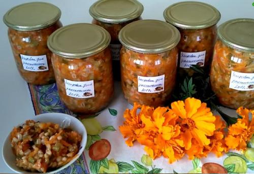 Готовую заправку расфасовываем по предварительно стерилизованным баночкам, хорошенько ее утрамбовываем, без лишней жидкости. Для этого мы будем использовать специальную ложку с дырочками. Заполненные баночки закатываем крышками, переворачиваем их и укутываем чем-то теплым, до полного остывания. После чего отправляем заправку в темное прохладное местечко на зимовку.