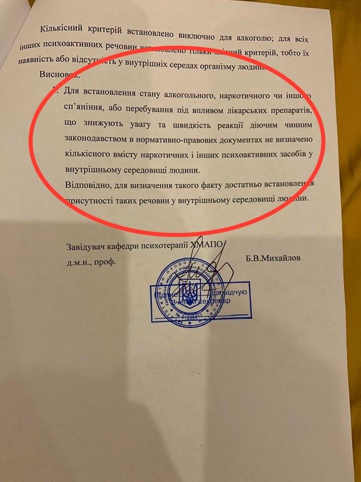 "Помните экспертов Харьковского областного бюро судебно-медицинских экспертиз, которые с двух раз не смогли определить, находилась ли Зайцева в состоянии наркотического опьянения? Так вот, им труба.