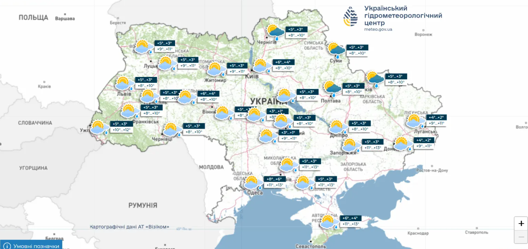 • Винница, Житомир - до +8°C, умеренная облачность.