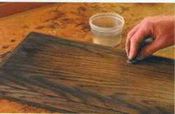 Этот метод подходит лишь для лиственных пород дерева, поскольку в них есть дубильные вещества. Заключается такая обработка в покрытие деревянных поверхностей нашатырным спиртом, что вызывает потемнение древесины с характерным серым оттенком. Предварительно поверхность лучше обработать наждачной бумагой. После обработки структура дерева проявляется особенно ярко, а благородное потемнение придаст изделию старинный вид. В случае использования древесины хвойных пород состаривать ее придется механическим или термическим методом.