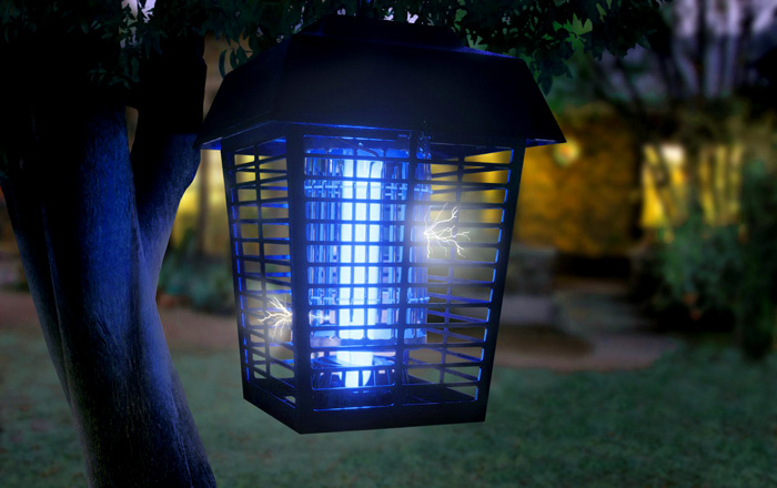 Принцип работы: насекомые привлекаются ультрафиолетовым светом и уничтожаются, контактируя с электрической сеткой под напряжением.