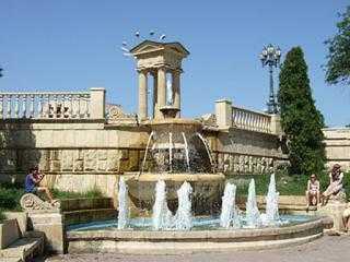 Еще одно популярное и, пожалуй, самое красивое место Ессентуков – городской фонтан без чаши. Он устроен так, что все трубы спрятаны в брусчатку и это обычная площадь, никто даже не догадается, что это фонтан. Но когда наступает вечер и его включают, то 10 тысяч тонн воды стремится в небо, а благодаря светодиодной подсветке вода переливается всеми цветами радуги. Это самый большой на юге России фонтан.