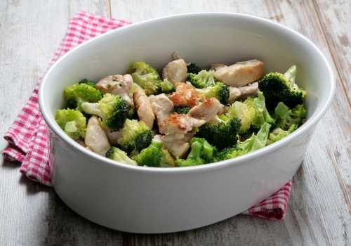 Способ приготовления: отварите курицу и разделите ее на порции. Потушите капусту брокколи с небольшим количеством соли. Поместите куриное мясо в посуду для выпечки, смазанную маслом, а сверху положите брокколи. Налейте взбитую сметану, приправьте и выпекайте в предварительно разогретой духовке при температуре 180 градусов.