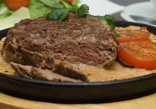 Способ приготовления: удалите излишки жира из мяса и разрежьте его на 4 части (стейки). Слегка смажьте сковороду маслом и поставьте на сильный огонь. Когда масло начнет дымиться, положите куски в сковороду. Жарьте в течение 3 минут с каждой стороны, периодически приподнимая их, чтобы не прилипали. Затем налейте виски и жарьте еще несколько минут. Уберите их из сковороды, сложите на тарелку и поставьте в тепло.
