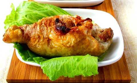 Продукты: 4 куриных ножки, 100 г ветчины, 100 г сыра, соль и перец по вкусу, оливковое или растительное масло.