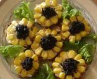 Перед подачей на стол «подсолнушки» оформить зеленью.