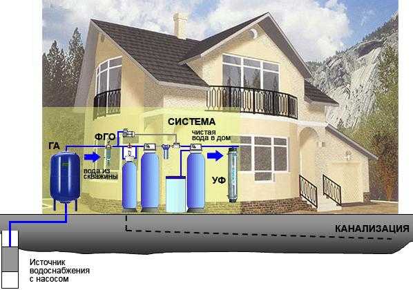 Для загородного дома используются, в основном, системы очистки воды, которые основаны на механической фильтрации, УФ-облучении, каталитическом окислении, сорбции с помощью активированного угля.