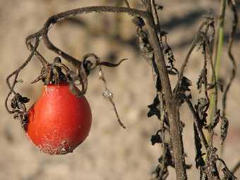Верховая гниль. Развивается в засушливые периоды лета. На верхних частях помидоров появляются темные водянистые пятна. Плоды помидоров чернеют и опадают. Для борьбы с болезнью самые эффективные химические средства. Из народных можно порекомендовать опрыскать настоем чеснока. Для его приготовления в 10 литров горячей воды воды добавляют 100-140 грамм чеснока. Все это один день настаивают, процеживают и опрыскивают пораженные болезнью растения.