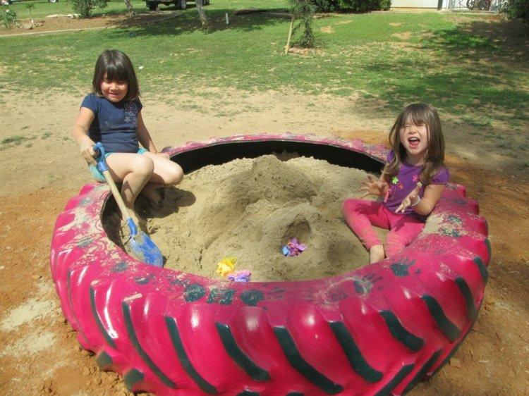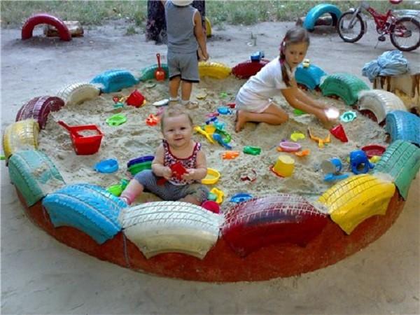 Жители крупных городов редко сталкиваются с проблемой организации отдыха для детей. В частном секторе родители должны самостоятельно организовать место для игр детям, и для того, чтобы каким-то образом сэкономить свой бюджет, они прибегают к различным уловкам. Деревянные песочницы выглядят красиво, но хорошая доска стоит дорого. Находчивые родители приспособили старые автомобильные шины для этих целей.