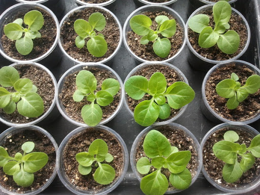 Петуния очень требовательна к поливу, она болезненно реагирует на пересушивание почвы. Поливают сеянцы под корень, а еще лучше - в поддон, чтобы капли воды не попадали на нежные листочки. В течение рассадного периода рассаду петунии до высадки в грунт пересаживают в горшки втрое большего объема. Впервые сеянцы пикируют, когда их стебельки можно будет удержать пальцами. Пересаживают сеянцы в небольшие одноразовые стаканчики. После пикирования дневную температуру снижают до 18-20 ° С, а ночную до 15 ºC. Корневая система у петуний разветвленная, и до того момента, когда погода позволит высадить их в грунт, вам придется пересаживать их еще раз-другой в большую посуду. Для нормального развития сеянцы подкармливают комплексным цветочным удобрением.