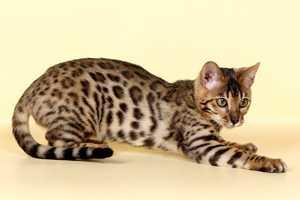 Это помесь домашней и азиатской леопардовой кошки. Бенгал - дикая кошка и находится на грани вымирания. Более века выводили эту породу. Лишь в 1960-х годах их начали выращивать в более или менее значительных количествах. Бенгалы пользуются спросом за счет редкости и специфического окраса, схожему с леопардовым. Цена на них иногда достигает сотен тысяч долларов.