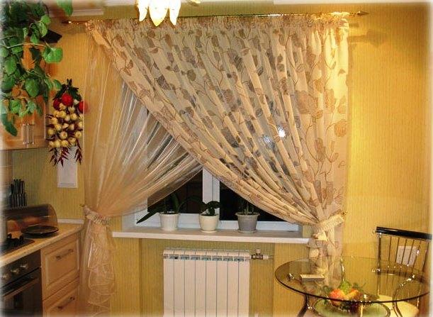 Еще одним шиком, отлично показывающим себя на кухне, являются жаккардовые шторы. Они могут выступать как самостоятельный декор или представлять дуэт с тюлем.