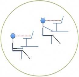 Чтобы иметь хорошую осанку экран должен быть на уровне глаз, так что вам не нужно смотреть вниз или вверх на монитор. Ваша спина должна быть прямой, а ноги должны быть на полу или слегка приподняты на подставке. Ваши предплечья должны либо опираться на стол, это означает, что сиденья стула должно быть достаточно высоким, или руки должны опираться на подлокотник кресла.
