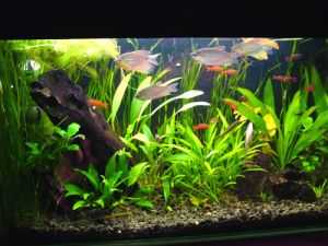 4. Слишком плотно не заселяйте аквариум. Подсаживать небольших рыбок следует с расчетом 1 рыбка на 15-20 литров воды. Крупных рыбок (более 20 см) – 1 рыбка на 30-40 литров. И, не сочетайте хищников с миролюбивыми рыбками, так они могут уничтожить слабые и мелкие особи.