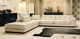 Этот кожаный диван является прекрасным примером из наиболее распространенных. Современный угловой диван довольно длинный с обеих сторон, хотя чаще они с одной стороны длиннее чем с другой. Спинка средней высоты предназначена для максимального комфорта для гостей любого роста. Две «сидушки» предназначены для того, чтобы служить полноценным спальным местом. Белый цвет является хорошим классическим цветом.