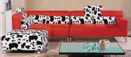 Если вы хотите выбрать угловой диван, который будет доминировать в комнате, то выбирайте яркую расцветку. Красный диван с принтом далматин подходит для этого. Все валики из принтового материала - съемные. Поэтому вы в любой момент вы можете смягчить внешний вид.