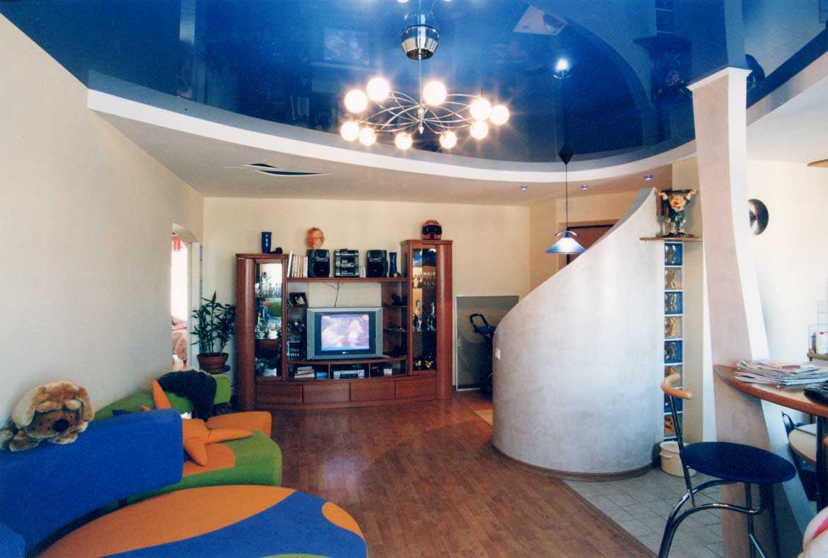 Как уже говорилось выше, что при помощи натяжного потолка вы сможете осуществить любые фантазии, так как способны придать потолку практически любую форму. А разнообразие фактуры и цветовой палитры натяжных потолков превышает более 200 вариантов.