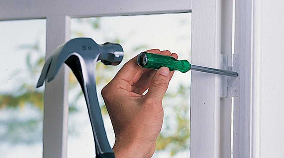 - Снимаем фурнитуру: замки и оконные ручки. Если дальнейшая эксплуатация из невозможна, то покупаем новые.
