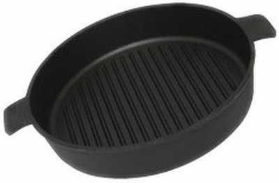 Есть такой вид посуды как сковорода гриль, для нее антипригарное покрытие - самое главное условие.
