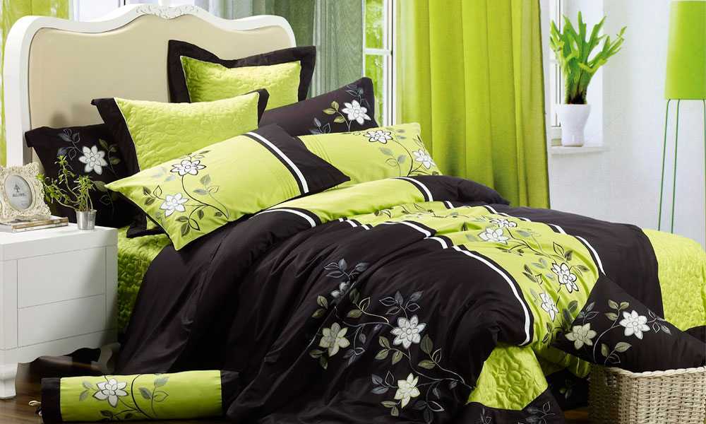 Постельное белье не обязательно должно быть доминантой интерьера. Если белье не однотонное, выберите сочетание, которое будет максимально выигрышно смотреться в вашей спальне. Например, лимонно-желтый цвет отлично гармонирует с синим, зеленым или нейтральным серым и белым цветом.