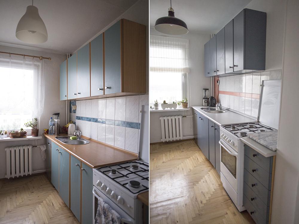 5. Мы обновляем фронты. Деревянные могут быть окрашены акриловой эмалью на водной основе для дерева или - если мы хотим получить более устойчивое покрытие - с алкидной эмалевой растворителем. Перед окраской их следует обезжирить и очистить, удалив старую краску, например, абразивной бумагой (грануляция 120), а остатки ее следует промыть растворителем. Преимущество этого решения заключается в том, что вы можете легко изменить цвет шкафов.