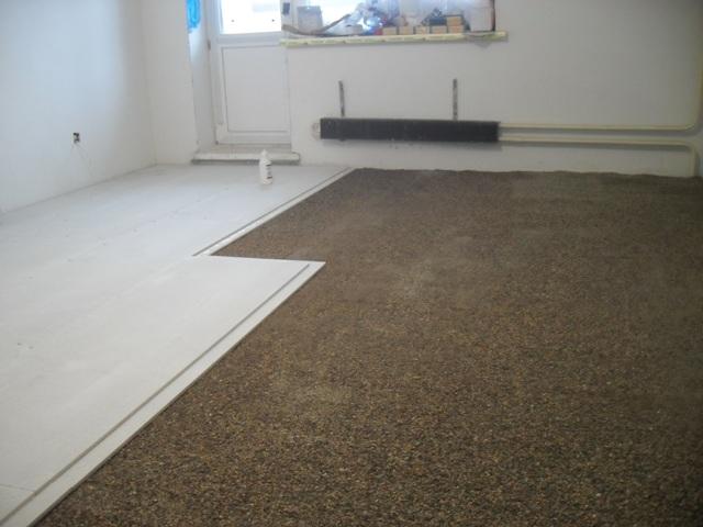 Нанесите слой керамзита толщиной около 25 см на уплотненную песчаную кровать и два слоя изолирующей фольги или гудронной бумаги на клей и бетонное основание.