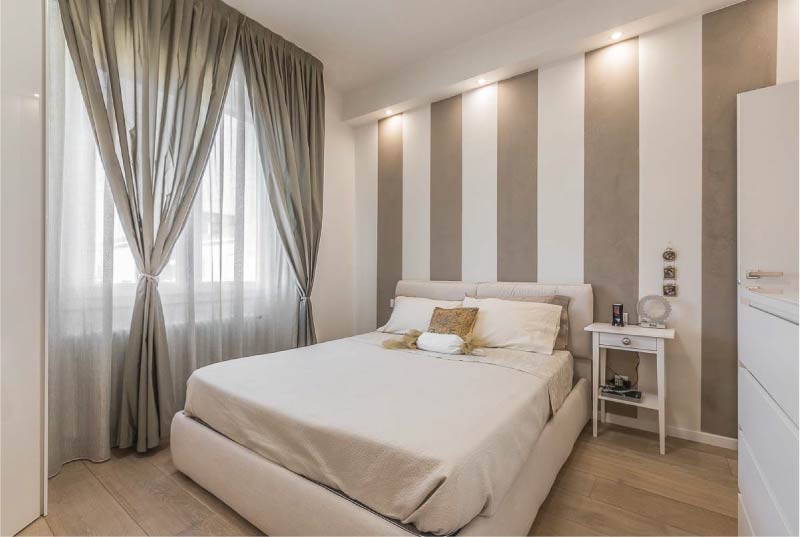 Еще одна слабость глаз включает в себя полосы - на этот раз горизонтальные. Нарисуйте две или три широкие горизонтальные полосы вокруг комнаты, чтобы ваша комната выглядела длиннее. Используйте светлое базовое покрытие и более темные полосы для оптимальных результатов.