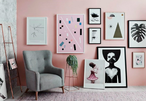 Устройте на стене картинную галерею. Это могут быть ваши любимые художники или иллюстраторы. Размеры картин разные в центре крупную раму, а вокруг более мелкие работы. Или картины без рамок с абстрактным акцентом.