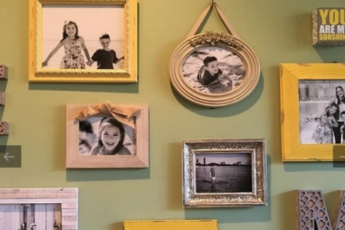 Для воплощения этой идеи, следует внимательно подбирать фотографии, желательно разного размера, можно сделать интересный коллаж. Нахождение в такой комнате навеет приятные воспоминания, поднимет настроение. Рамки следует покупать разного формата, одинаковые будут скучно смотреться. Оформить в виде сердца или дерева, то есть учитывать для какой комнаты подойдут выбранные фото.