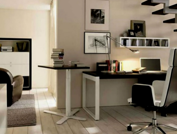 Комфортная мебель играет важную роль, особенно если вы работаете с бумагами или за компьютером. Письменный стол и удобное кресло просто необходимо. На выборе кресла экономить не рекомендуем, это отразится впоследствии на здоровье вашей спины. Предметы, необходимые для работы, размещаем в ящиках стола и делаем пару подвесных полок - так все будет под рукой и не займет лишнего места.