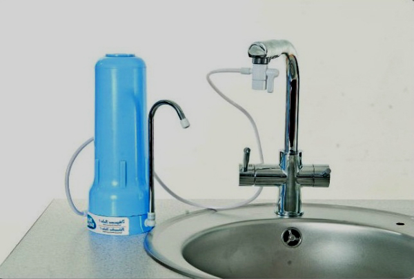 - Проточные фильтры на мойку - с помощью специального шланга одевают на кран, а сам фильтр стоит рядом, его недостаток в том, что занимает место на мойке;