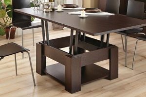 В этой комнате, как правило, находит применение журнальный столик. Несмотря на то что сам по себе он невелик, возможность трансформации делает его ещё более компактным. Правильно подобрав, его можно с лёгкостью вписать в интерьер любой квартиры или дома. Будучи компактным в сложенном виде, он становится функциональным, универсальным, способным выполнять самые разнообразные роли, если его трансформировать. Журнальный столик данного типа можно использовать для отдыха за чтением книг, в качестве обычной тумбы и даже для приёма пищи. Наличие палочек, ящиков и других систем хранения позволяет разместить в нём множество предметов, при этом совершенно не утрачивается оригинальность оформления - такой столик смотрится выгодно и более интересно, чем традиционные классические варианты.