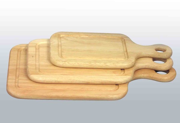 - Дерево — эти доски изготавливаются из цельного массива или клееного, в составе которого присутствует химия. Цельная древесина является более прочным материалом, не раскалывается от рубки, но при выборе огромное значение имеет тип дерева. Наилучшим современным материалом для кухонной доски считается каучуковое дерево гевея и бамбук.